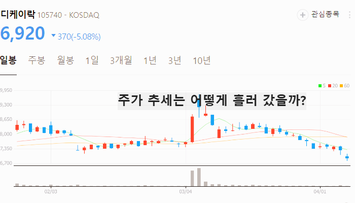 향후 주가 상승이 기대되는 디케이락 주가는 2025년 4월 7일 기준 6920원입니다. 이 글을 읽고 있는 지금 디케이락 주가는 어떻게 되었을까요?