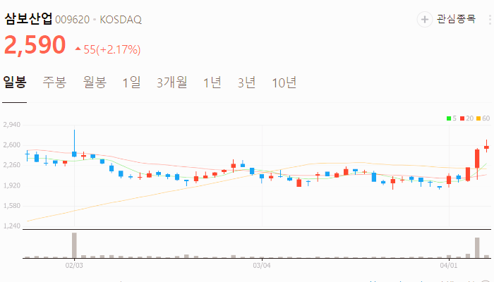 향후 주가 상승이 기대되는 삼보산업 주가는 2025년 4월 7일 기준 2590원입니다. 이 글을 읽고 있는 지금 삼보산업 주가는 어떻게 되었을까요?