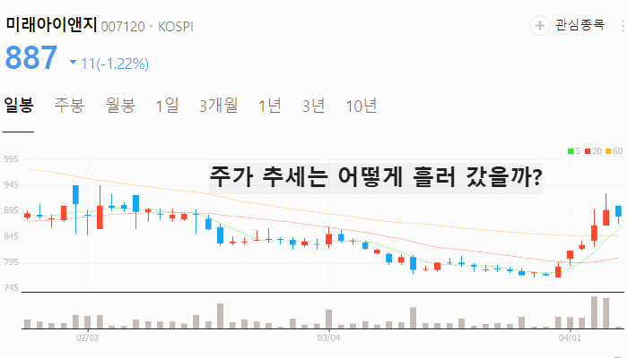 향후 주가 상승이 기대되는 미래아이앤지 주가는 2025년 4월 7일 기준 887원입니다. 이 글을 읽고 있는 지금 미래아이앤지 주가는 어떻게 되었을까요?
