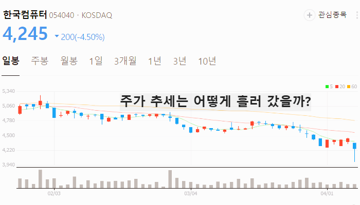 향후 주가 상승이 기대되는 한국컴퓨터 주가는 2025년 4월 7일 기준 4245원입니다. 이 글을 읽고 있는 지금 한국컴퓨터 주가는 어떻게 되었을까요?