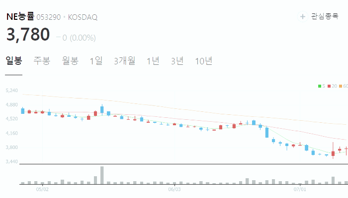 7월11일 기준 NE능률 주가는 3780원입니다.