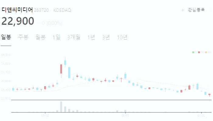 7월4일 기준 디앤씨미디어 주가는 22900원입니다. 아래에서 이 글을 읽고 있는 순간 디앤씨미디어 주가 추세를 확인해 보세요.