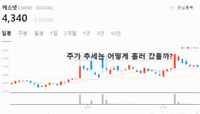 아래에서 그 동안 에스넷 주가 추세가 어떻게 흘러갔는지 확인해보세요.