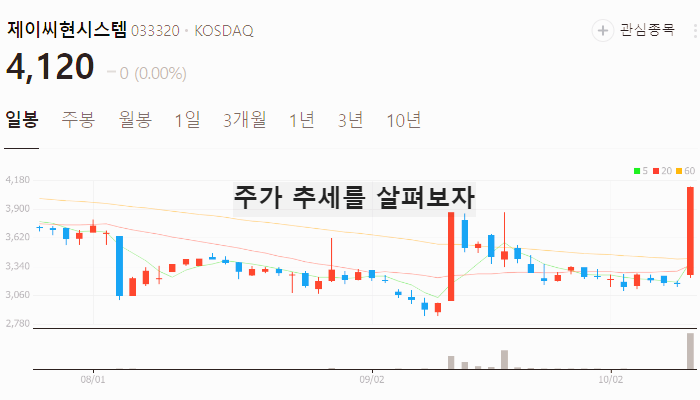 향후 주가 상승이 기대되는 제이씨현시스템 주가는 2024년 10월 15일 기준 4120원입니다.