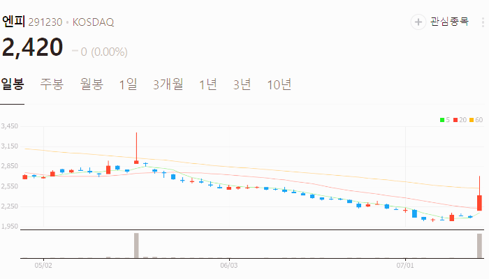 아래에서 이 글을 읽고 있는 순간 엔피 주가 추세를 확인해 보세요.