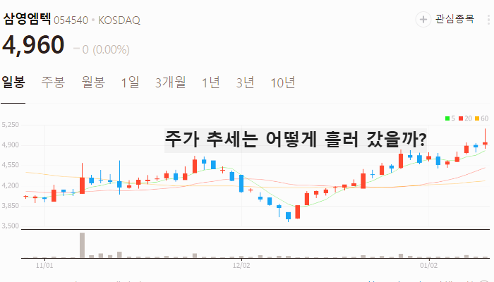 향후 주가 상승이 기대되는 삼영엠텍 주가는 2025년 1월 13일 기준 4960원입니다.