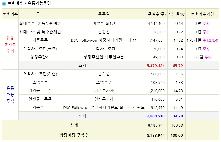 시장에서 긍정적으로 보는 상장 당일 유통물량 기준 비율인 30% 이상을 넘어가는 민테크 유통물량 33.58%은 다소 부담 스러운 수치 입니다.