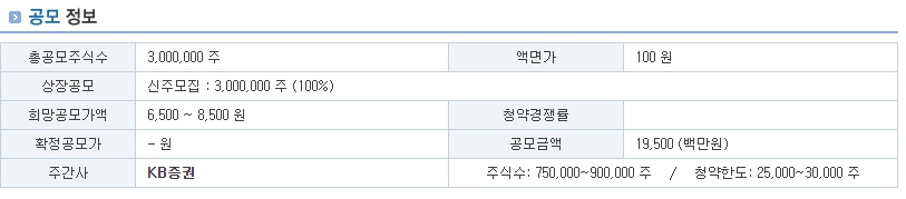 | 상장일 | 미 정 | |||