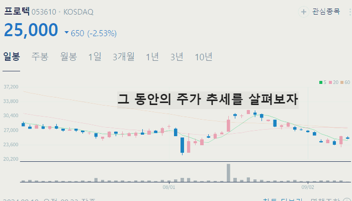 아래에서 그 동안 프로텍 주가 추세가 어떻게 흘러갔는지 확인해보세요.