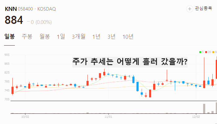 향후 주가 상승이 기대되는 KNN 주가는 2024년 12월 10일 기준 884원입니다.