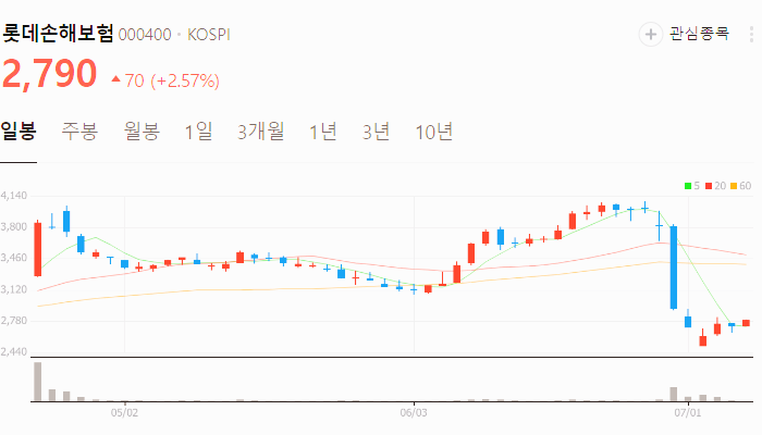 오늘 기준 롯데손해보험 주가는 2790원입니다. 아래에서 이 글을 읽고 있는 순간 롯데손해보험 주가 추세를 확인해 보세요.