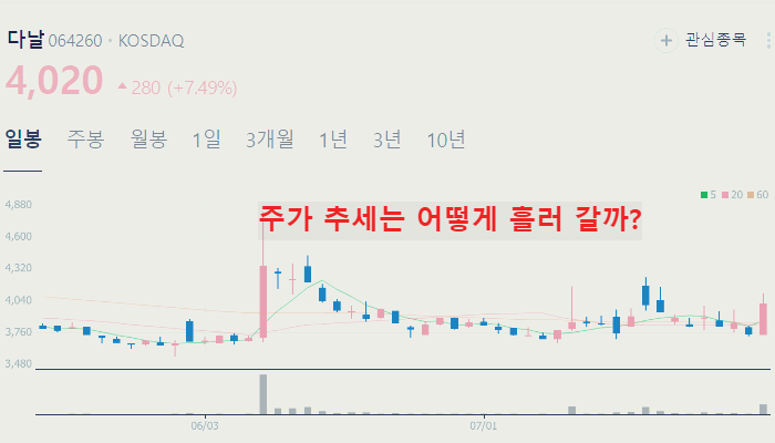아래에서 주가 상승의 기회를 놓치지 마세요! 다날 주가 추세를 확인해보세요.