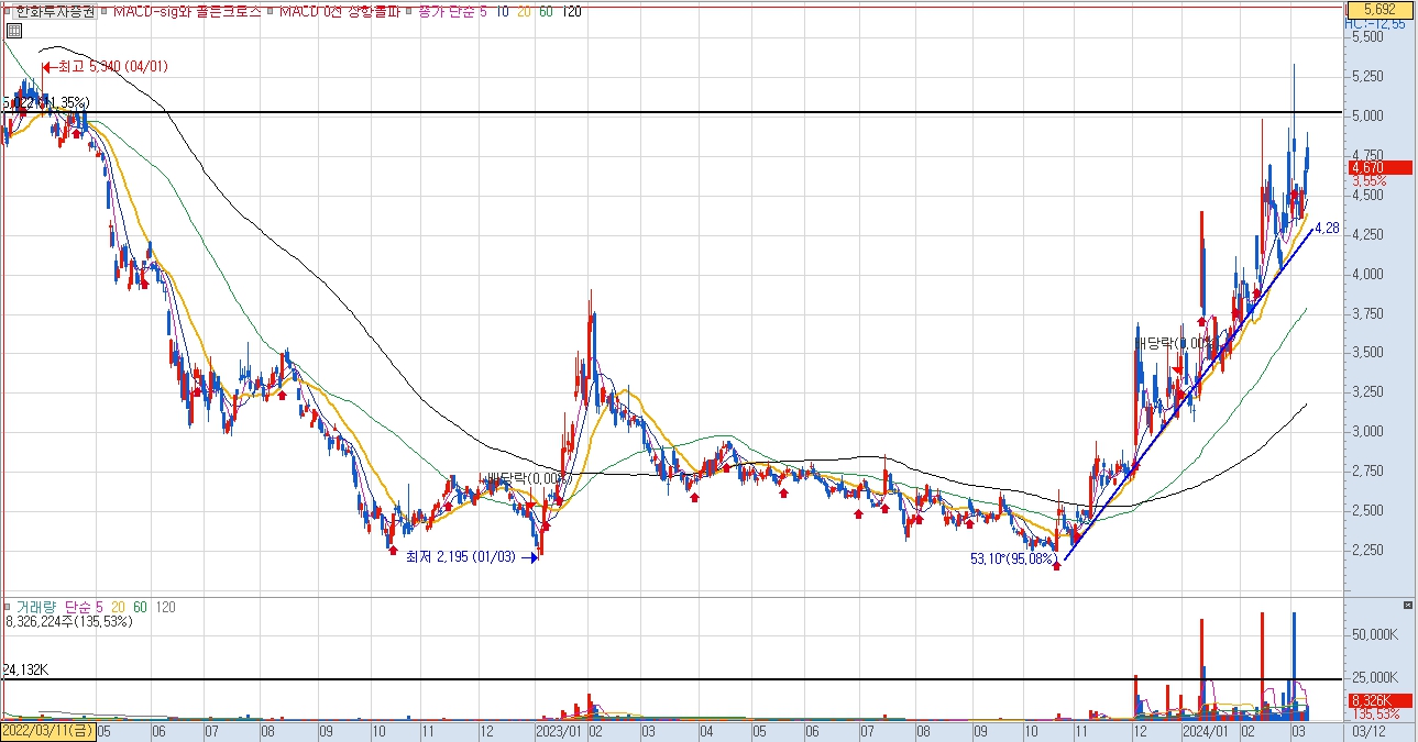 이로 인해 한화투자증권의 주가는 지난 11월부터 강한 상승세를 보이며 2000원에서 5000원까지 상승하여 100% 이상의 상승률을 기록하고 있습니다.