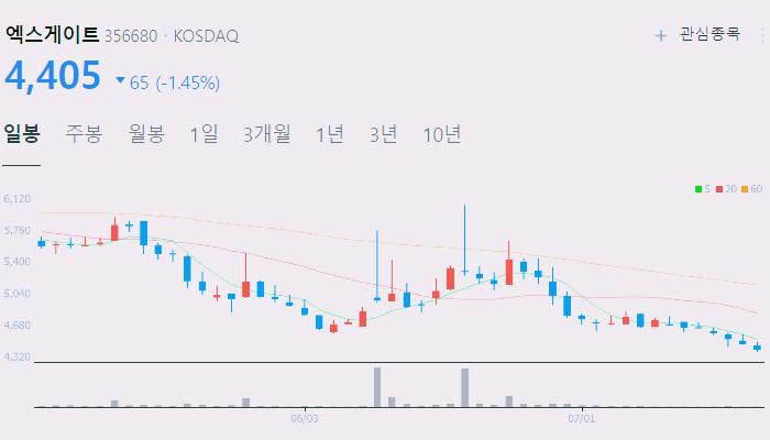 아래에서 이 글을 읽고 있는 순간 엑스게이트 주가 추세를 확인해 보세요.
