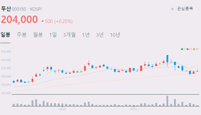 아래에서 이 글을 읽고 있는 순간 두산 주가 추세를 확인해 보세요.