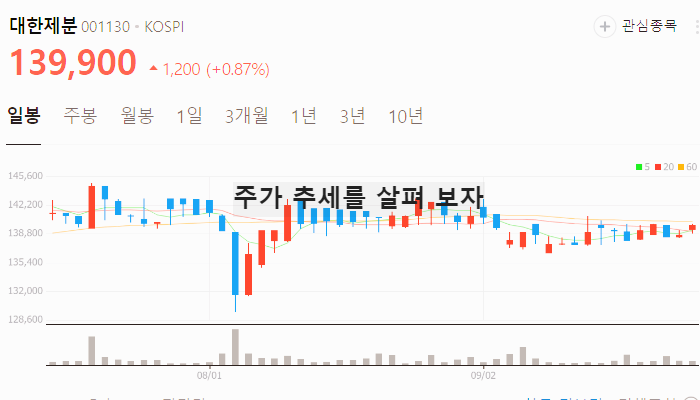아래에서 그 동안 대한제분 주가 추세가 어떻게 흘러갔는지 확인해보세요.