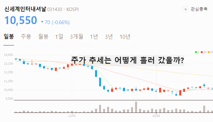 아래에서 그동안 신세계인터내셔날 주가 추세가 어떻게 흘러갔는지 확인해보세요.