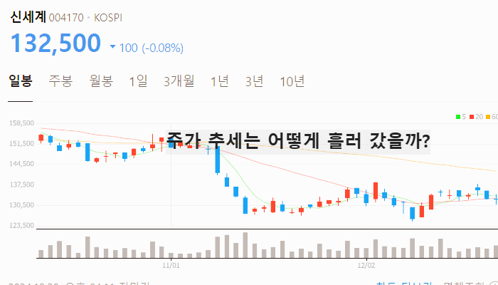 향후 주가 상승이 기대되는 신세계 주가는 2024년 12월 23일 기준 132500원입니다.