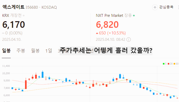 향후 주가 상승이 기대되는 엑스게이트 주가는 2025년 4월 10일 기준 8,490원입니다. 이 글을 읽고 있는 지금 엑스게이트 주가는 어떻게 되었을까요?