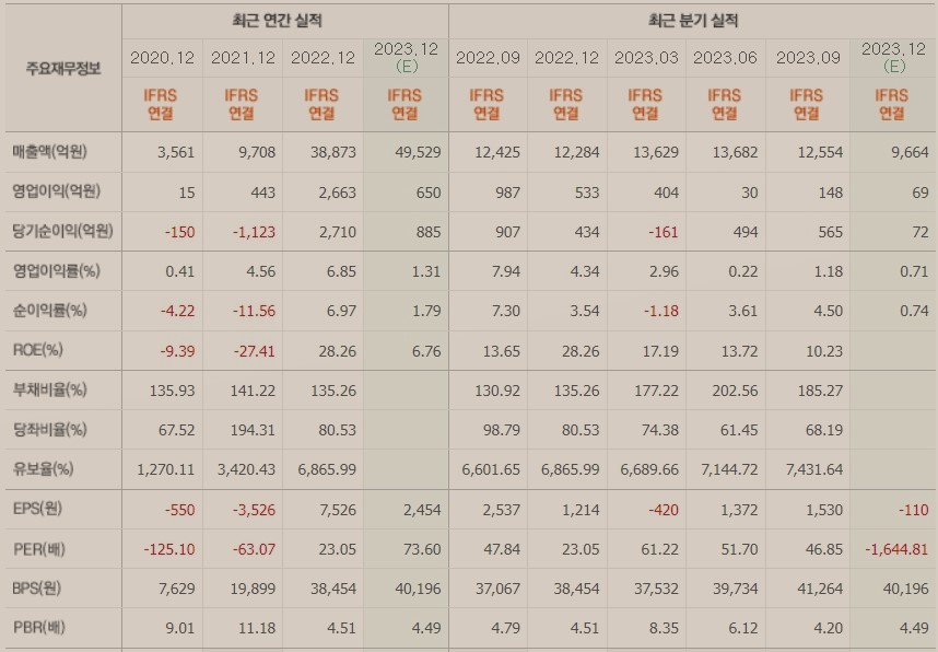 그러나 최근 2023년에는 영업이익과 당기순이익이 크게 감소하며 시장의 불안을 유발하고 있습니다. 그나마 다행스러운 점은 이러한 실적 악화가 내부적인 요인 보다는 외부 요인에서의 영향이 크다는 것 입니다.