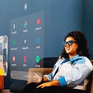 기존의 헤드셋, 고글형 AR 기기와 달리 안경 형태로 더 편리하고 일상적인 사용이 가능해졌습니다. 특히 작은 프로젝터가 렌즈에 탑재되어 3D 이미지를 투사하고, 손목 밴드를 통해 손동작으로 제어할 수 있는 기능이 혁신적입니다.
