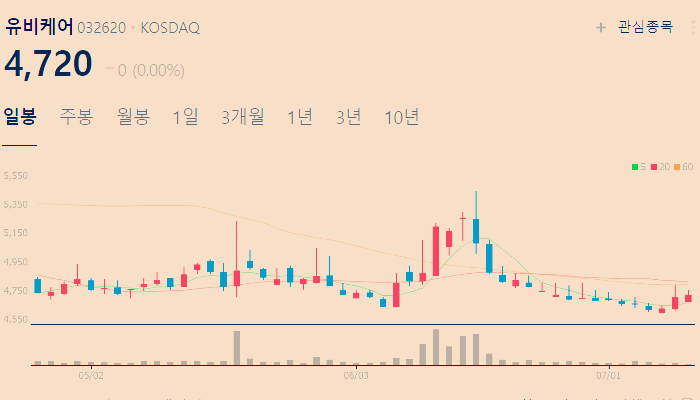 7월10일 기준 유비케어 주가는 4720원입니다.