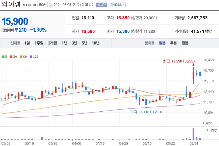 6월 6일 기준 와이랩 주가는 15900원입니다. 아래에서 이 글을 읽고 있는 순간 와이랩 주가 추세를 확인해 보세요.