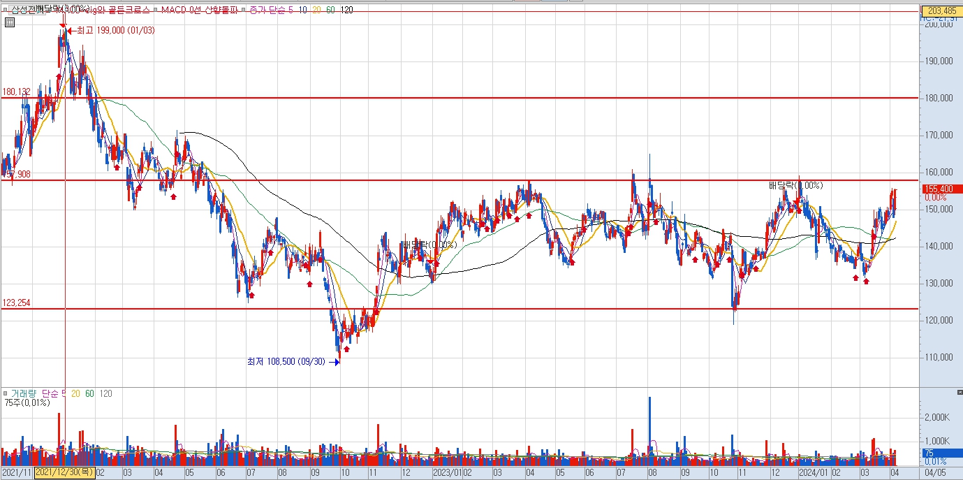 삼성전기의 주가전망을 차트로 확인해 보시기 바랍니다.