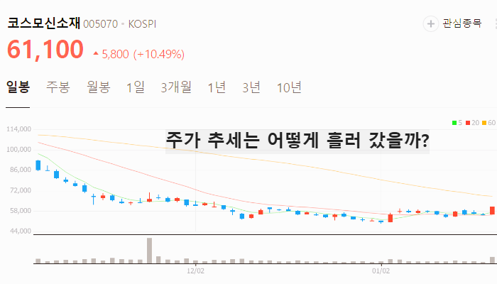 향후 주가 상승이 기대되는 코스모신소재 주가는 (2025년 1월 21일) 기준 61100원입니다.