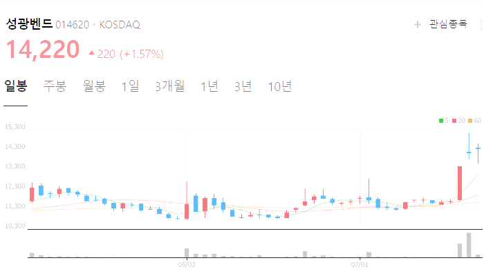 7월18일 기준 성광벤드 주가는 14220원입니다.