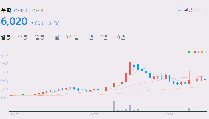 현재 무학의 주가는 약 8,000원이며, 시가총액은 1,716억원입니다.