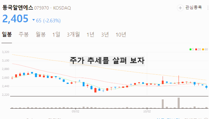 향후 주가 상승이 기대되는 동국알앤에스 주가는 2024년 10월 28일 기준 2405원입니다.