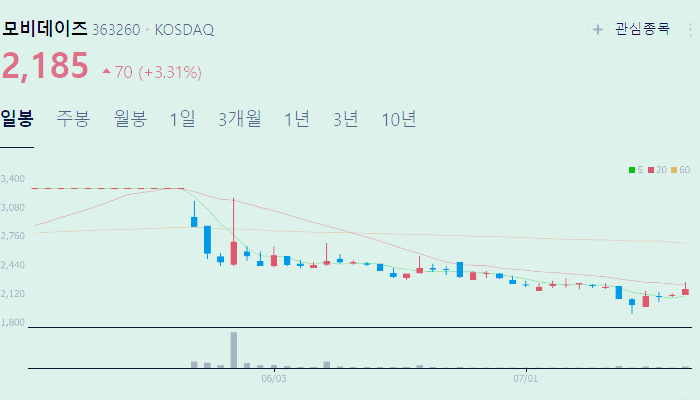 아래에서 이 글을 읽고 있는 순간 모비데이즈 주가 추세를 확인해 보세요.