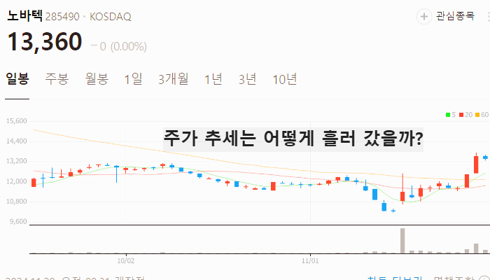 향후 주가 상승이 기대되는 노바텍 주가는 2024년 11월 29일 기준 13360원입니다.