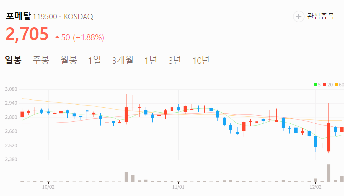 아래에서 그동안 부방 주가 추세가 어떻게 흘러갔는지 확인해보세요.