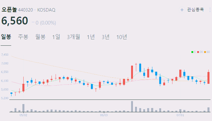 아래에서 이 글을 읽고 있는 순간 오픈놀 주가 추세를 확인해 보세요.