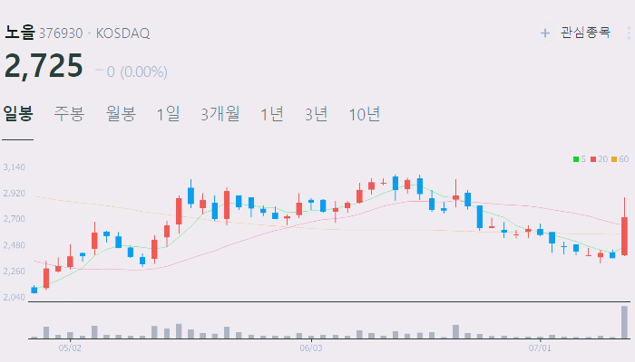 아래에서 이 글을 읽고 있는 순간 노을 주가 추세를 확인해 보세요.