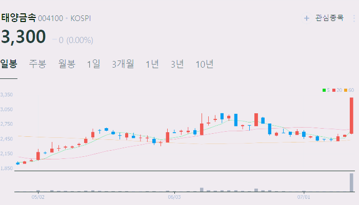 아래에서 이 글을 읽고 있는 순간 태양금속 주가 추세를 확인해 보세요.