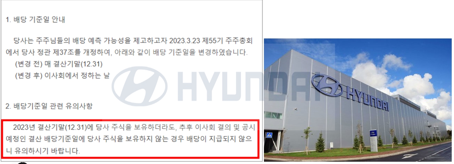 현대차의 2023년 마지막 결산 배당기준일은 기존에는 12월 31일까지 주식을 보유한 경우에 해당되었습니다.