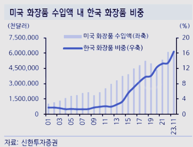 이는 세계 시장에서 한국 화장품이 다시 성장하고 있다는 것을 시사합니다. 과거에는 중국 수출에 의존했지만 이제는 일본과 미국의 저가품 시장으로 확대되면서 각 국가별 화장품 수입액 내 한국 제품의 비중이 늘고 있습니다.