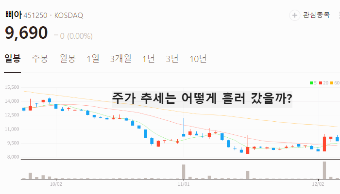 아래에서 그 동안 삐아 주가 추세가 어떻게 흘러갔는지 확인해보세요.