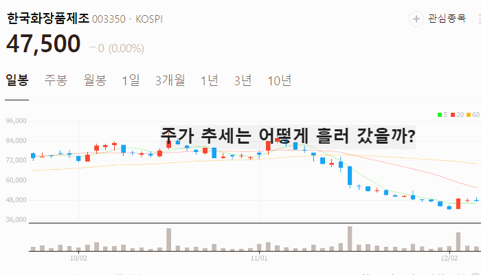 아래에서 그 동안 한국화장품제조 주가 추세가 어떻게 흘러갔는지 확인해보세요.