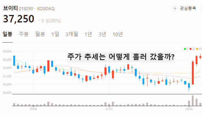 향후 주가 상승이 기대되는 브이티 주가는 2024년 12월 6일 기준 37250원입니다.