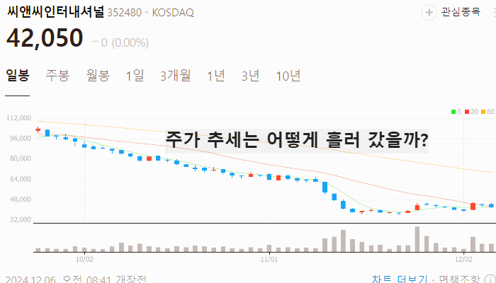 향후 주가 상승이 기대되는 씨앤씨인터내셔널 주가는 2024년 12월 6일 기준 42050원입니다.
