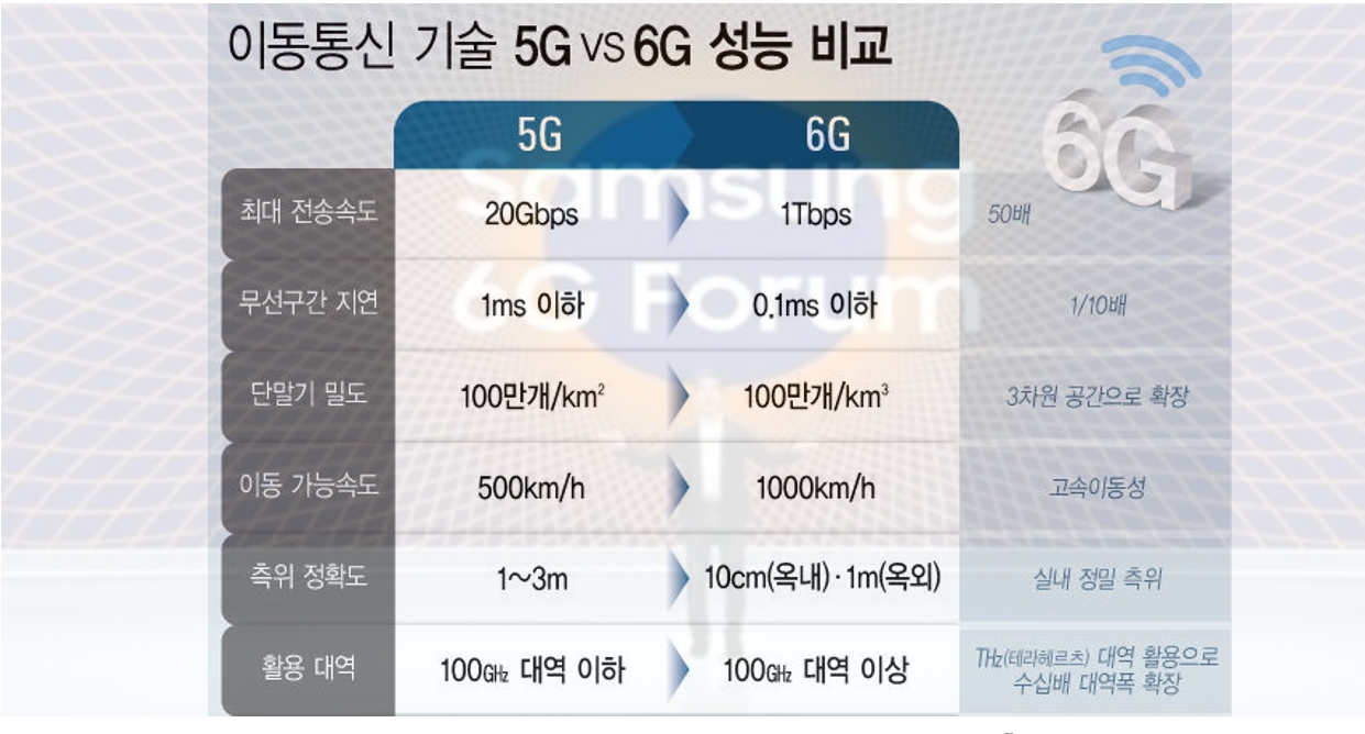 여기서 6G는 현재 개발 중인 차세대 이동통신 기술로서, 5G를 대폭 발전시킨 혁신적인 기술을 제공할 것으로 예상됩니다.