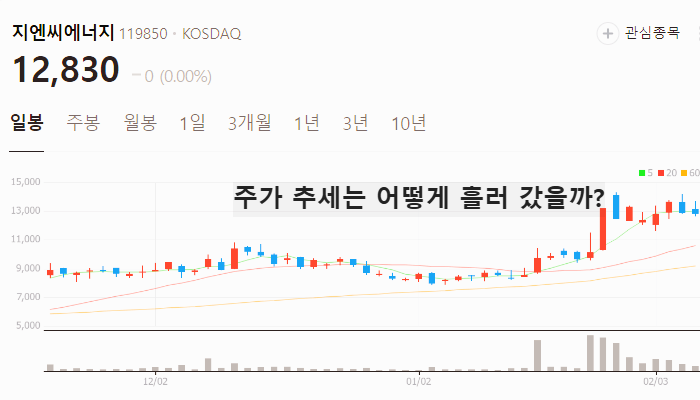 아래에서 그 동안 지엔씨에너지 주가 추세가 어떻게 흘러갔는지 확인해보세요.