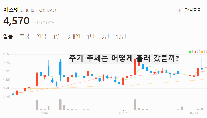아래에서 그 동안 에스넷 주가 추세가 어떻게 흘러갔는지 확인해보세요.