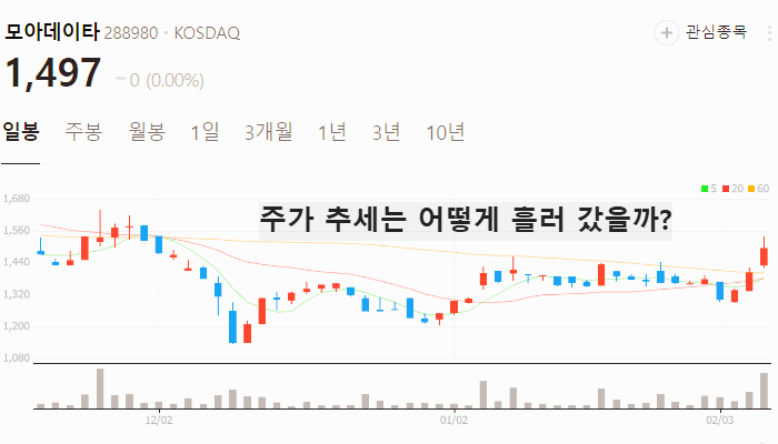 아래에서 그 동안 모아데이타 주가 추세가 어떻게 흘러갔는지 확인해보세요.