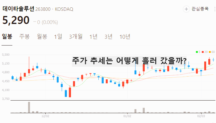 아래에서 그 동안 데이타솔루션 주가 추세가 어떻게 흘러갔는지 확인해보세요.