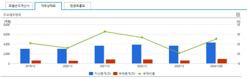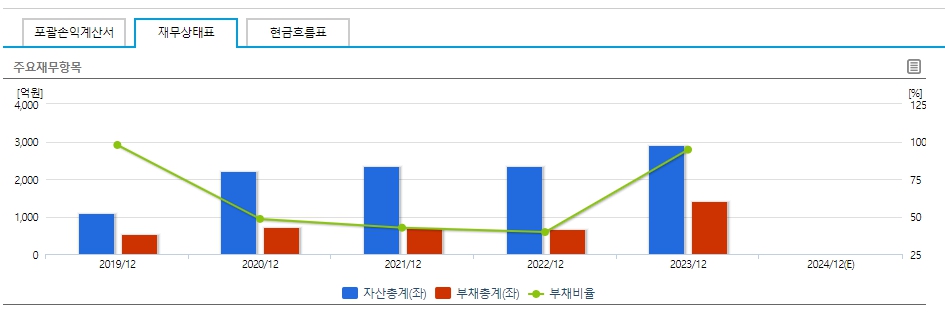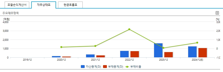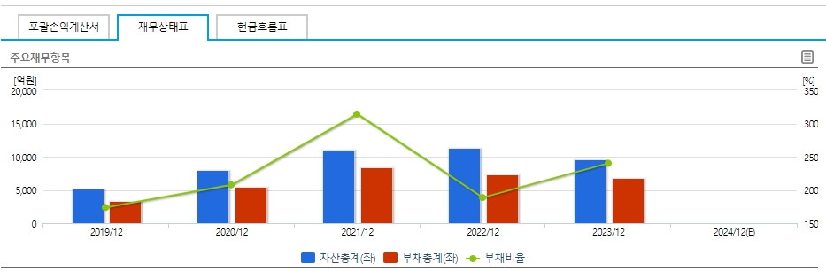 - 부채총계: 2021년 12월 대비 2023/12까지 약 148.3% 증가 후 2024/12(E)까지 증가 예상